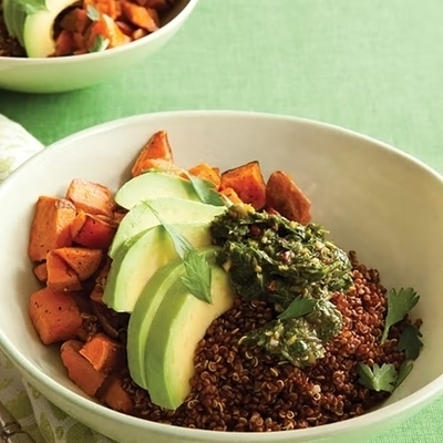 Chimichurri has its roots in Argentina, where it is usually slathered over grilled meat. Here, it...