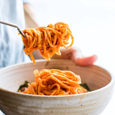 This easy vegan pasta takes just 15 minutes to make! Vegetarian ragu recipe is hearty, rich, slig...